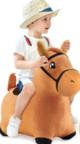 - Horse - sports a brown coat with a fluffy mane and tail made from plush fabric that is removable and washable.