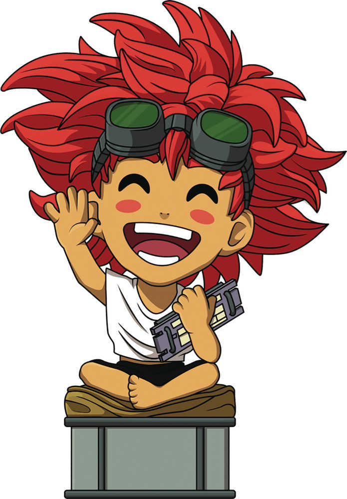 From Youtooz. Always happy, and brilliantly smart, Edward is seated cross legged on a puffy cushion with their green goggles around the top of her forehead. The double-walled window box is illustrated to show the yellow couches seen inside the Bebop spaceship where Edward likes to hang out working with technology, playing games, and chatting with Ein. This collectible ships in a matte, embossed, protective outer sleeve inspired by the Cowboy Bebop opening sequence.